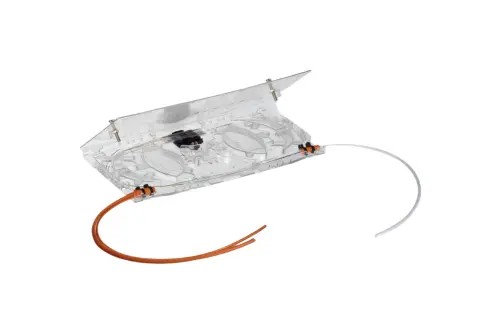 - Avec un ou deux supports de protection des épissures pour le montage de 6 à 12 fibres optiques