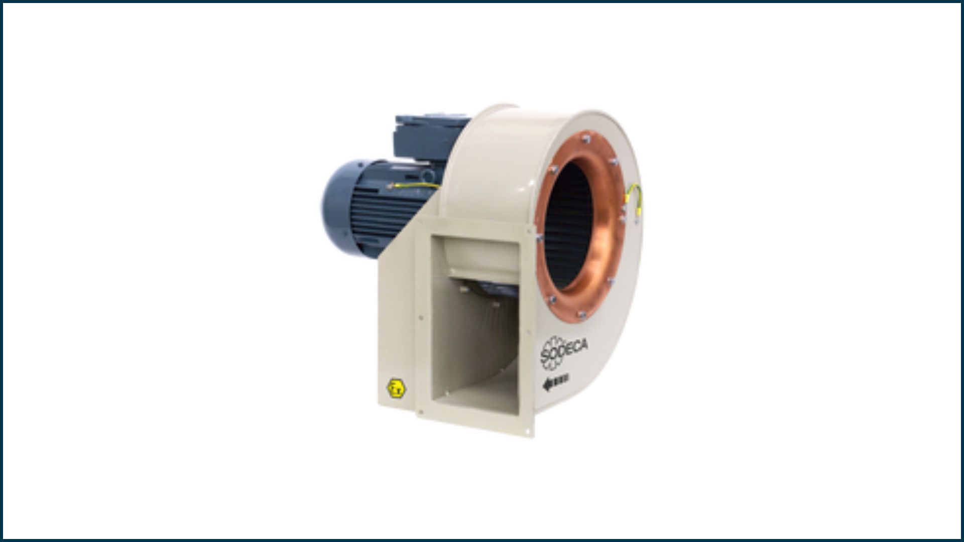 Roue à pales bent-back ou forward-curved pour pressions ≥ 2 000 Pa. Boîtier acier peint époxy ou inox 316L, garniture mécanique ATEX, capot pare-pluie “spark-free” pour zones poussières 21/22.