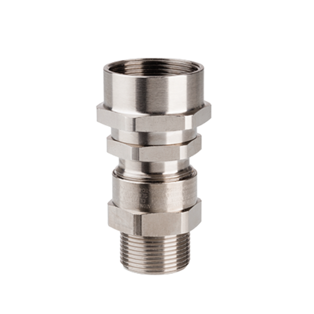 La gamma di pressacavi ADCS per condotto consente il collegamento di un cavo non armato in un condotto rigido. L'ADCS è disponibile in ottone nichelato e anche in acciaio inossidabile 316L per una migliore resistenza alla corrosione. Il filo maschile può essere ISO o NPT, e il filo femminile può essere ISO, NPT o BSPP. Il condotto fornisce il cavo con la massima protezione meccanica in ambienti estremi. Questo tipo di connessione condotto può essere utilizzato per applicazioni antidoflagranti espanse (ex d), maggiore sicurezza (ex e) o semplicemente industriale. La tenuta che esplora la tenuta è assicurata da un anello in silicone, che offre un ampio intervallo di temperatura di funzionamento di -60 ° C a +140 ° C. La filettatura femminile degli ADCS è rotante per consentire la connessione diretta di un condotto industriale rigido.
